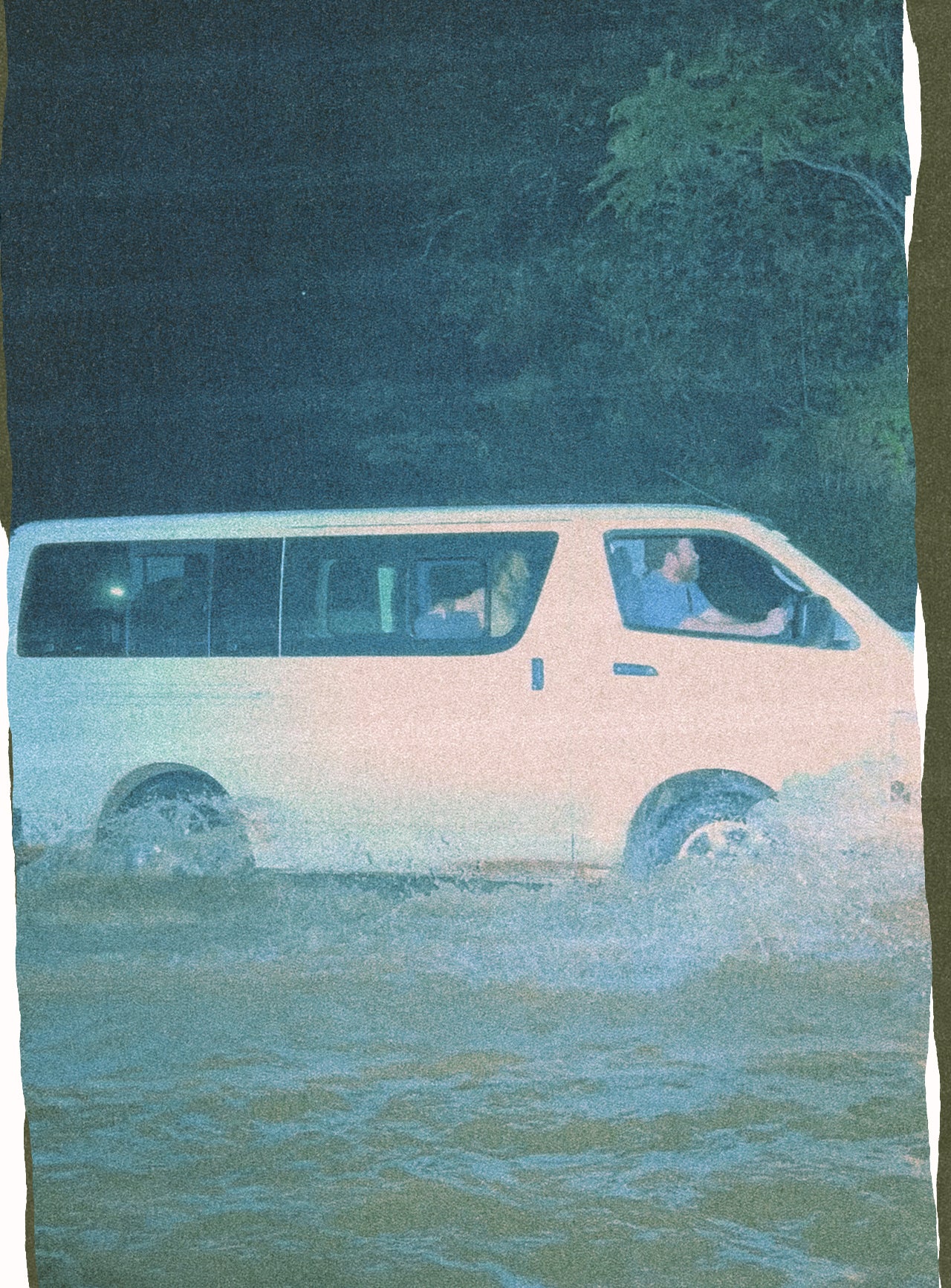 Two of the guys got out to inspect the front of the van - now with the license plate completely horizontal after slamming into a creek bed - and realized that the aforementioned bald tires were completely failing on the incline out. We were pushin’ it up if we were gonna get out (see pics for proof).