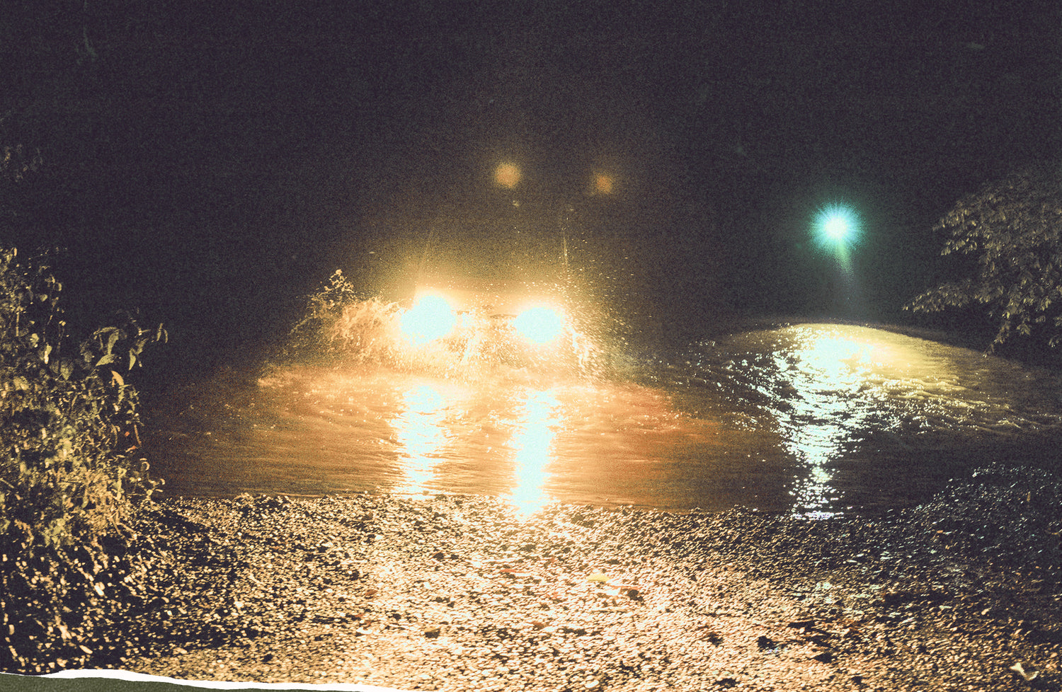 Finally, we turn a corner and literally slam on the breaks as we approach a legit river cutting off the road. We get out and even with the help of our flashlights could not see the other side.