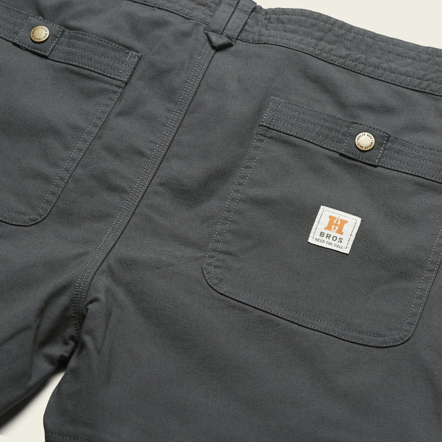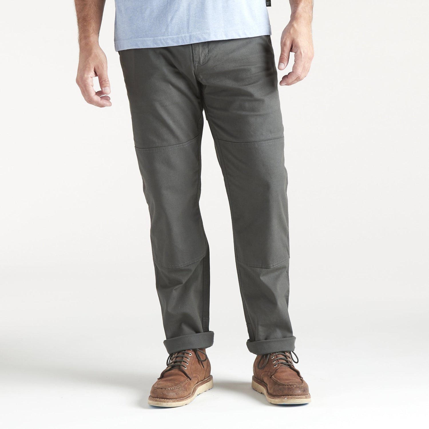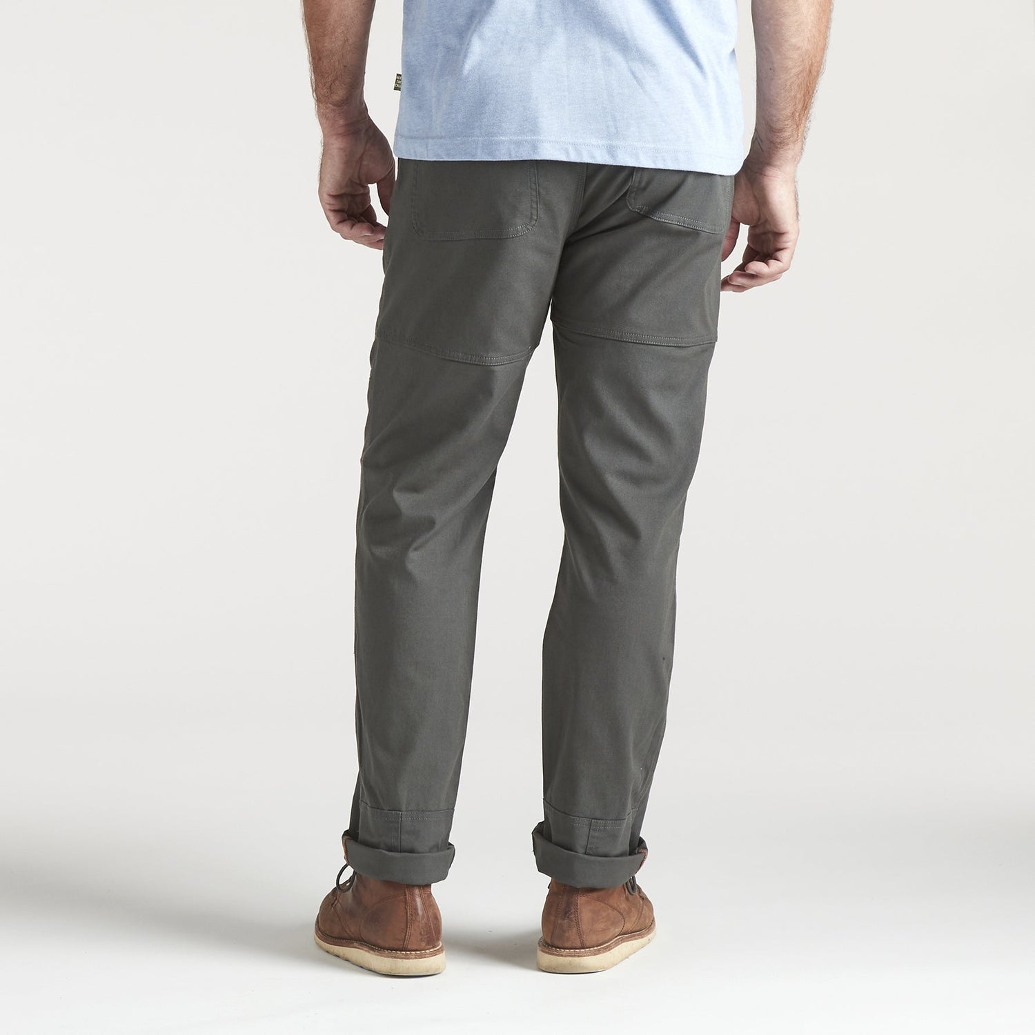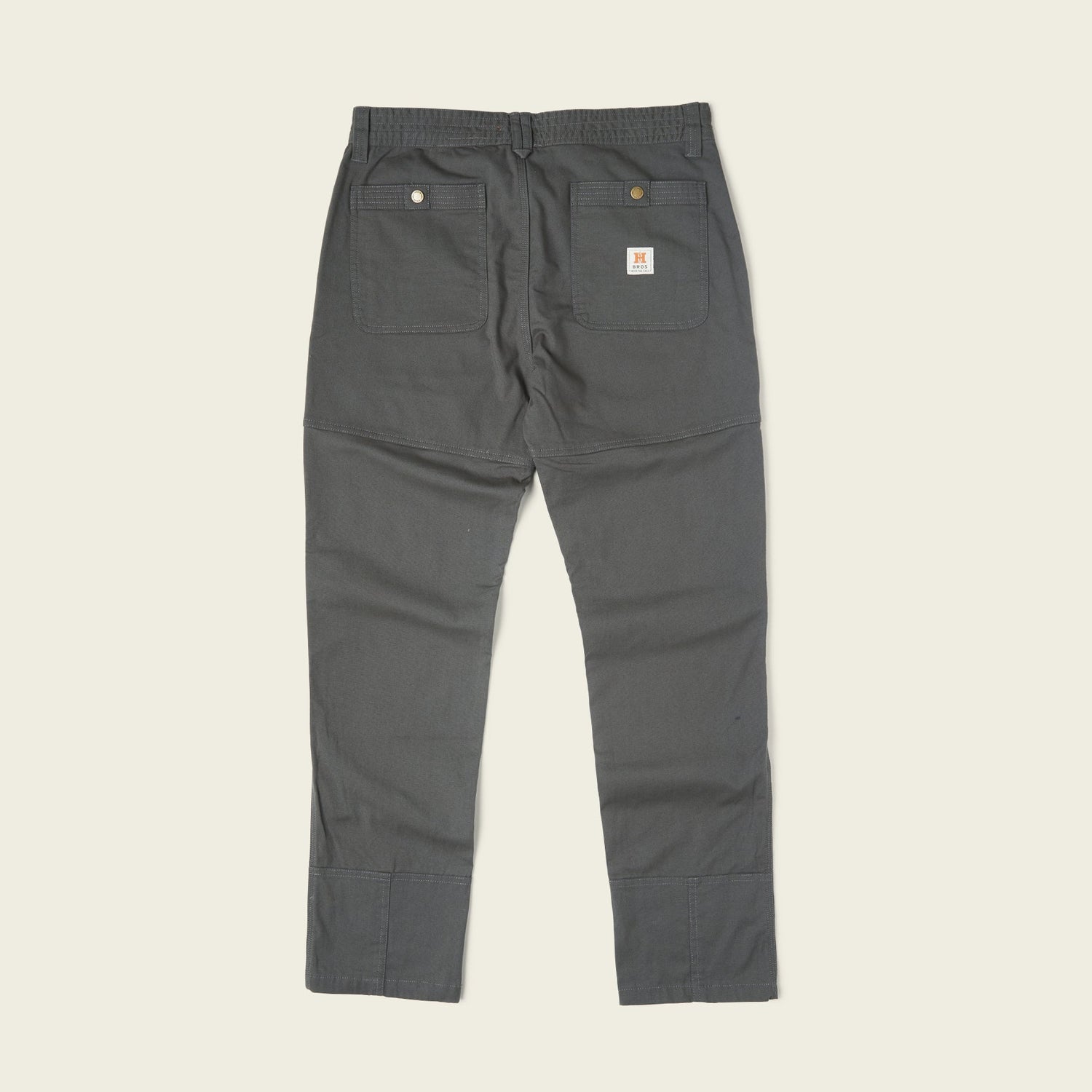 Designed for grinding away on any labor of love, the ATX Work Pants strike a balance between the comfort of a well-worn pair of jeans and the durability and toughness of traditional workwear. Constructed of our newly developed cotton canvas blend with tough Cordura® nylon and a touch of stretch for unfettered movement, the reinforced knee and kick plate panels will take any beating you throw their way. The two back pockets have heavy-duty snap closures to keep your stuff from disappearing when the going gets tough.