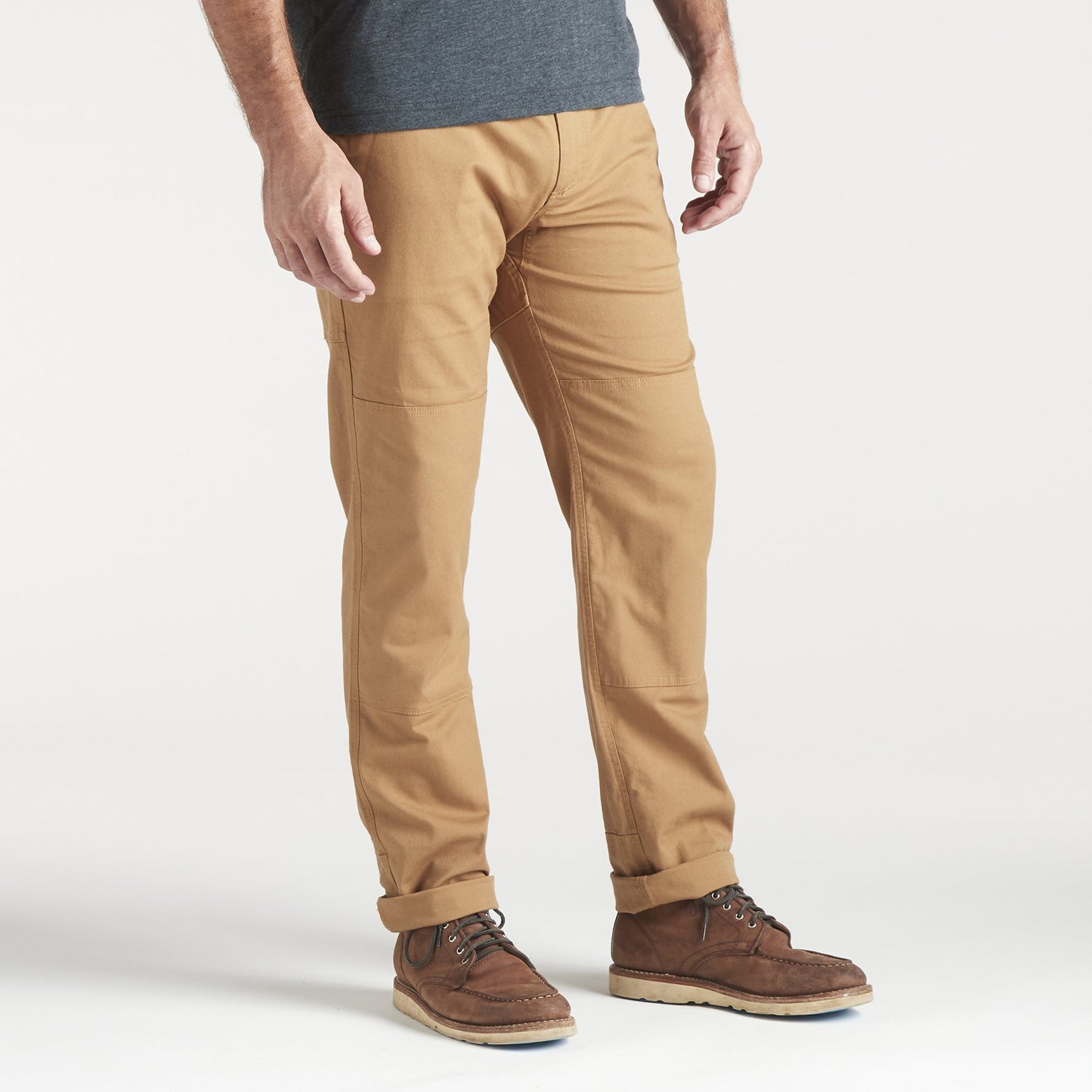 Designed for grinding away on any labor of love, the ATX Work Pants strike a balance between the comfort of a well-worn pair of jeans and the durability and toughness of traditional workwear. Constructed of our newly developed cotton canvas blend with tough Cordura® nylon and a touch of stretch for unfettered movement, the reinforced knee and kick plate panels will take any beating you throw their way. The two back pockets have heavy-duty snap closures to keep your stuff from disappearing when the going gets tough.