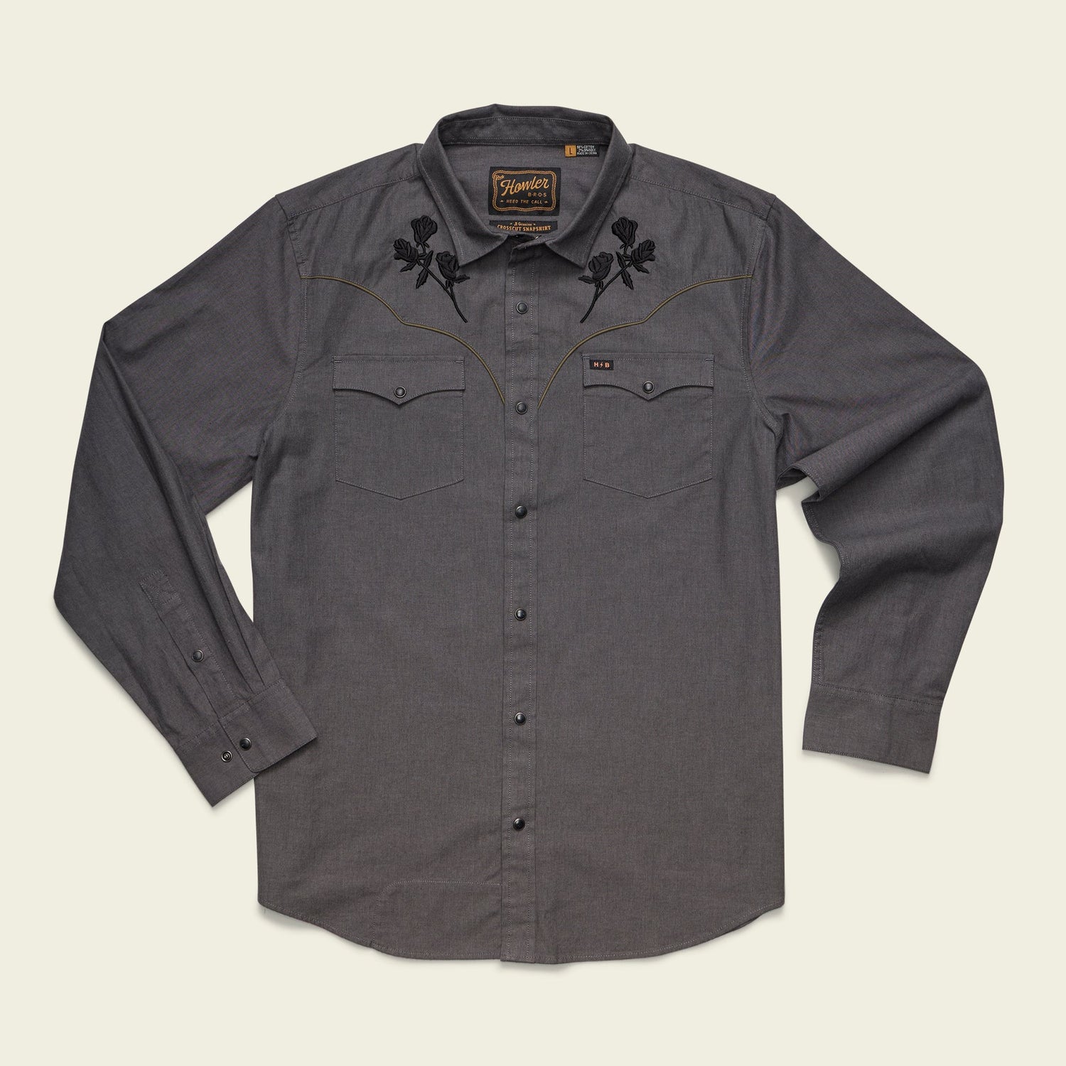 The Crosscut Deluxe is the most sought after item in our fall line year in and year out. Yes, the vintage inspired motif embroidery makes a big statement but so too do the bountiful pearl snaps, western yokes and robust stretch chambray. Collect these right along with your Gauchos for year-round Howler coverage.
