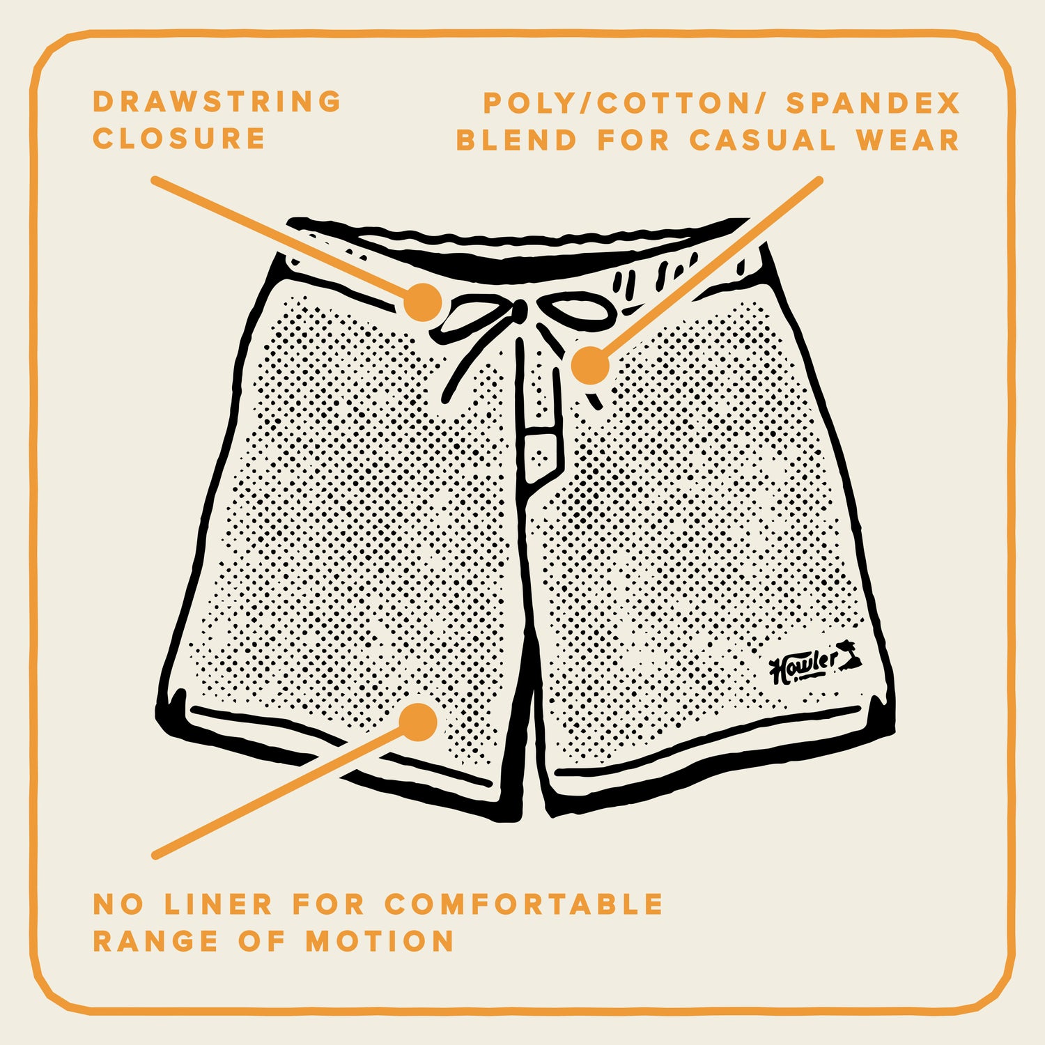 The Deep Set Boardshorts borrow style and features from volley shorts of the past. The elastic waistband, 17" outseam, 7” inseam and drawcord work equally well for jump serves, beach hangs or noseriding. Set yourself up.