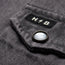 • A long-sleeve, button-up gray Denim Snapshirt with two front chest pockets and white buttons, laid flat on a light beige background—perfect for those seeking versatile style.