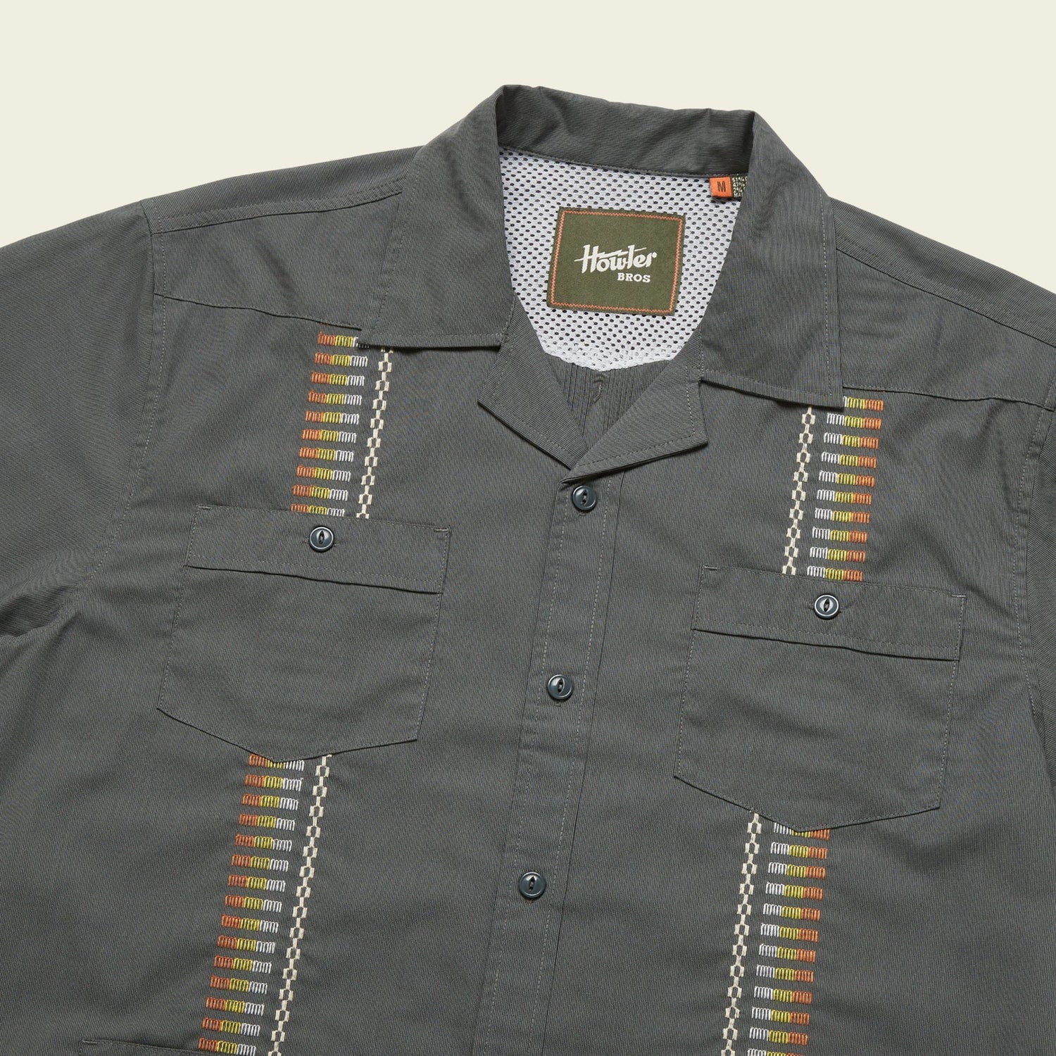 We love reinventing traditional garments and bringing them into the modern age with upgraded fit and fabric. One of our favorite platforms for reinvention is the Guayabera. We based our latest rendition on the classic but gave it some serious Howlerfication with a mesh lined vented back yoke, totally unique embroidery, technical cotton-poly stretch fabric that dries quickly and enlarged pockets for convenient beer storage so you can take your turn throwing washers. Dress it up and look like you have your act together or just throw it on with your flops and boardies.