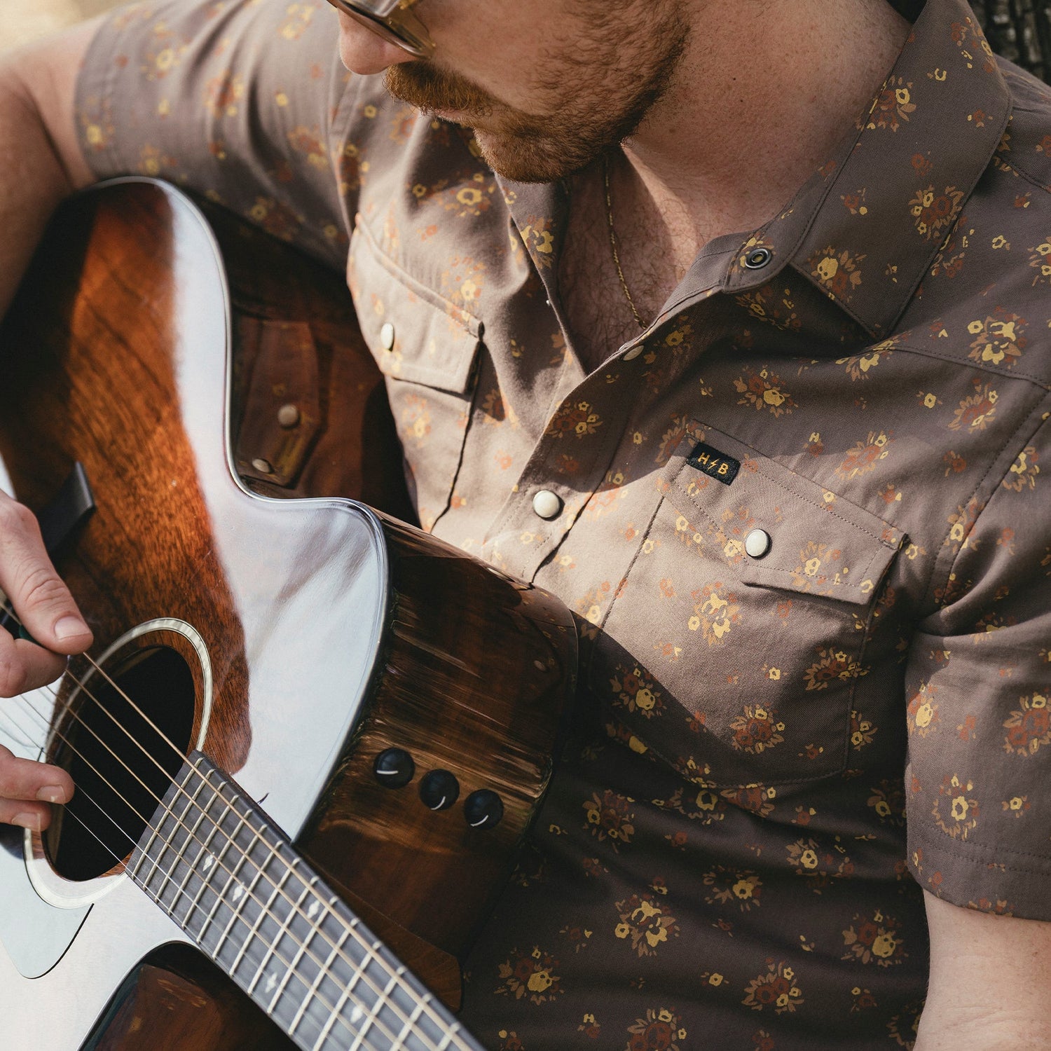 Our H Bar B Snapshirt is one of our most popular releases every season because of its glorious pearl snaps and timeless good looks. It is THE new classic pearl snap shortsleeve. We twist it up each season in our very own vintage inspired prints and plaids with our HB original sunglass cleaning microfiber at the hem. There’s a whole stampede of imitators out there trying to get in the pasture with their own version of this shirt. Choose your horse wisely and make sure it’s branded H Bar B.