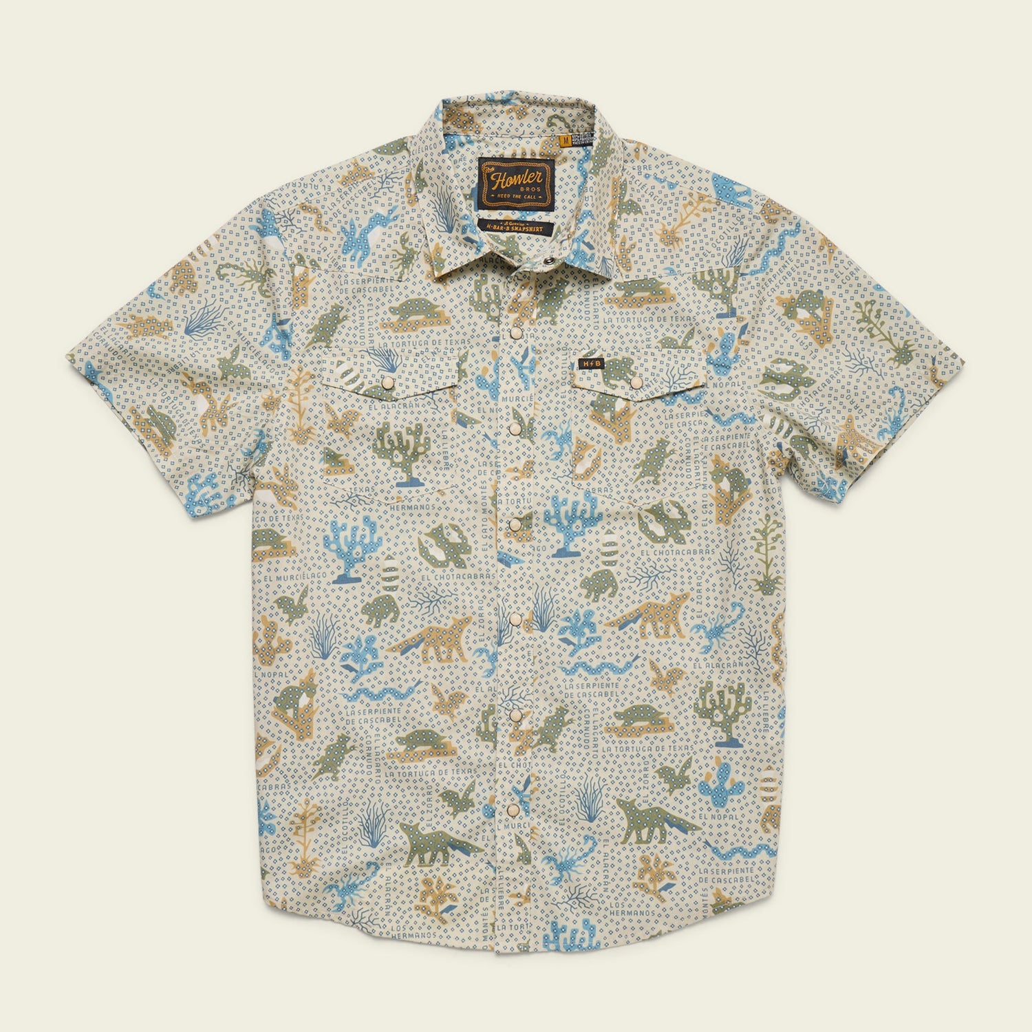 Our H Bar B Snapshirt is one of our most popular releases every season because of its glorious pearl snaps and timeless good looks. It is THE new classic pearl snap shortsleeve. We twist it up each season in our very own vintage inspired prints and plaids with our HB original sunglass cleaning microfiber at the hem. There’s a whole stampede of imitators out there trying to get in the pasture with their own version of this shirt. Choose your horse wisely and make sure it’s branded H Bar B.