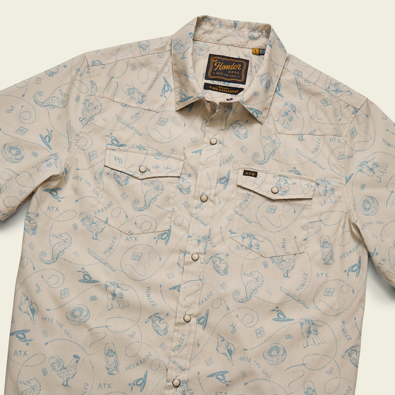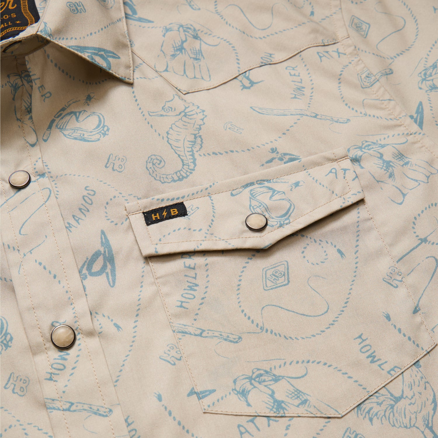 Our H Bar B Snapshirt is one of our most popular releases every season because of its glorious pearl snaps and timeless good looks. It is THE new classic pearl snap shortsleeve. We twist it up each season with new prints, patterns and textures with our HB original sunglass cleaning microfiber at the hem. There’s a whole stampede of imitators out there trying to get in the pasture with their own version of this shirt. Choose your horse wisely and make sure it’s branded H Bar B.