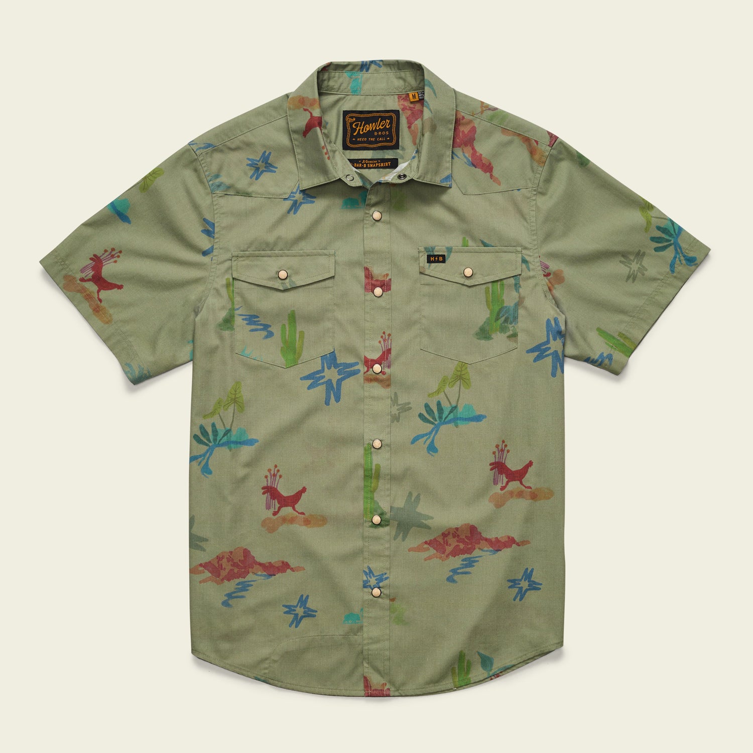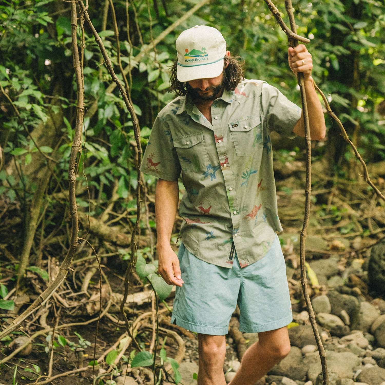 Our H Bar B Snapshirt is one of our most popular releases every season because of its glorious pearl snaps and timeless good looks. It is THE new classic pearl snap shortsleeve. We twist it up each season in our very own vintage inspired prints and plaids with our HB original sunglass cleaning microfiber at the hem. There’s a whole stampede of imitators out there trying to get in the pasture with their own version of this shirt. Choose your horse wisely and make sure it’s branded H Bar B.