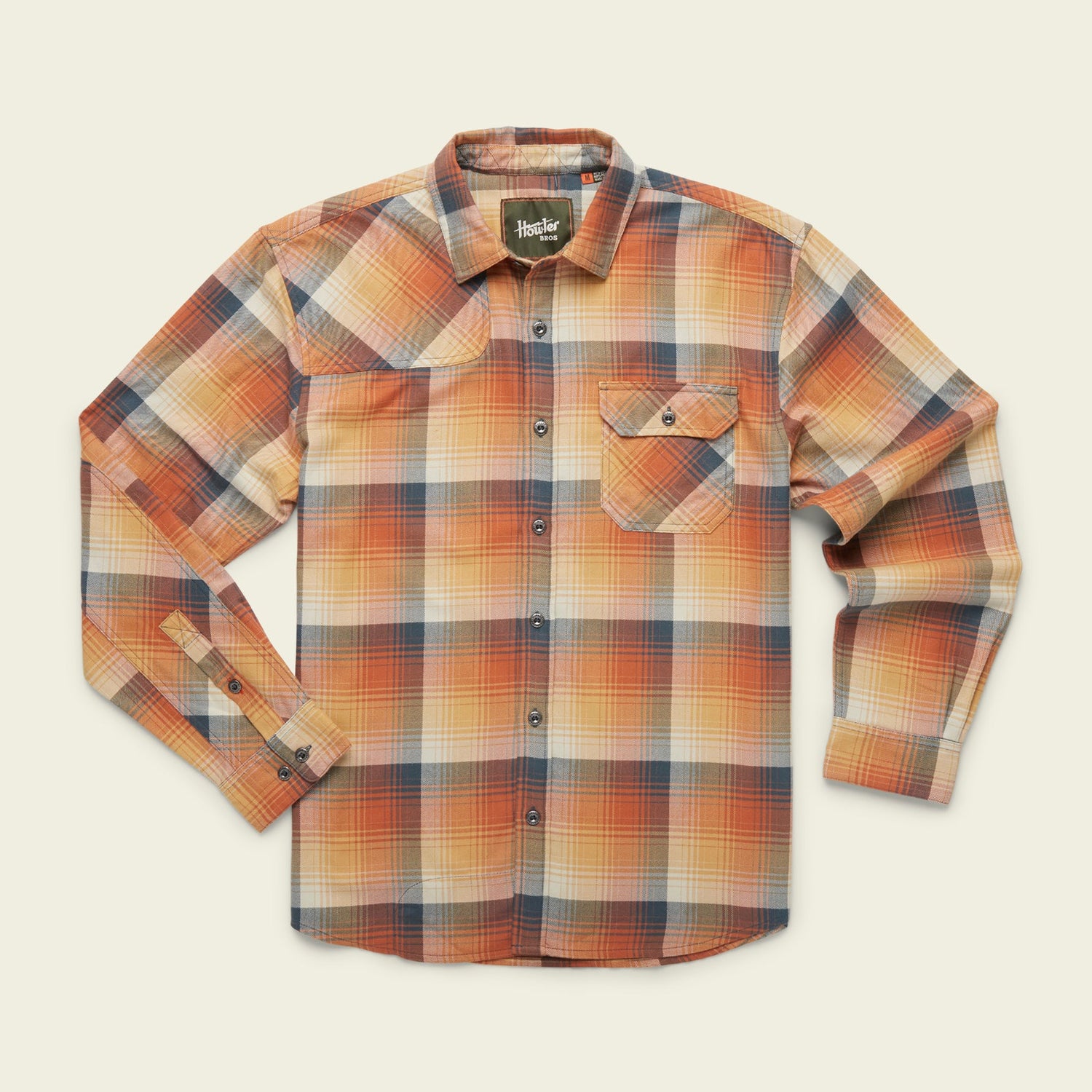 One of our best sellers, the Harker's Flannel brings buttery soft warmth to the Howler table. We kept it simple enough to be a staple in your closet but added a little Howler vibe with a single button-through flap pocket on the left chest, reinforced elbow patches, custom metal buttons and a hunter's yoke on the right shoulder.