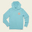• A long-sleeve, blue lightweight hoodie with a subtle stripe pattern and an orange Howler logo featuring a helicopter on the left chest. The hooded tech shirt is laid flat on a plain, light background.