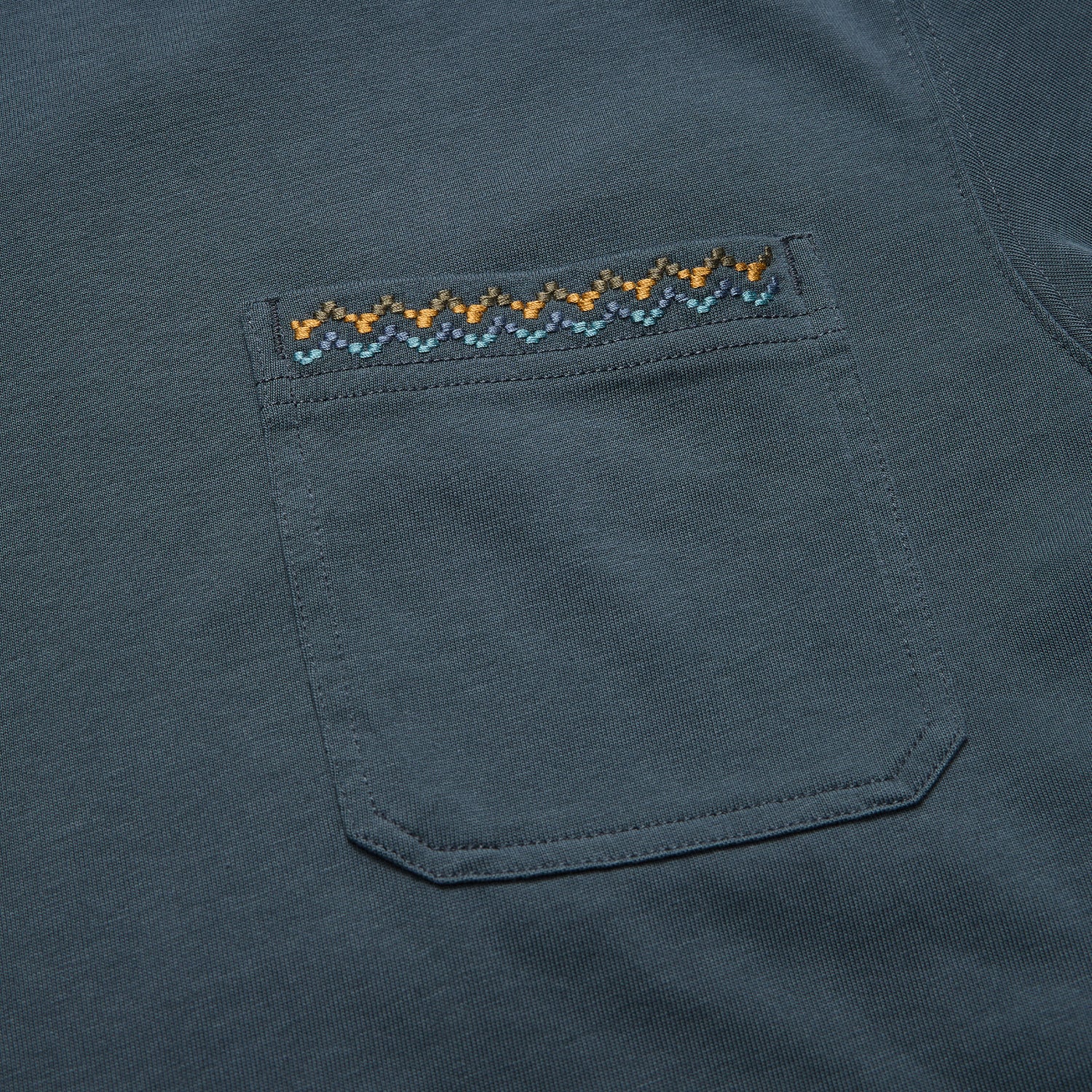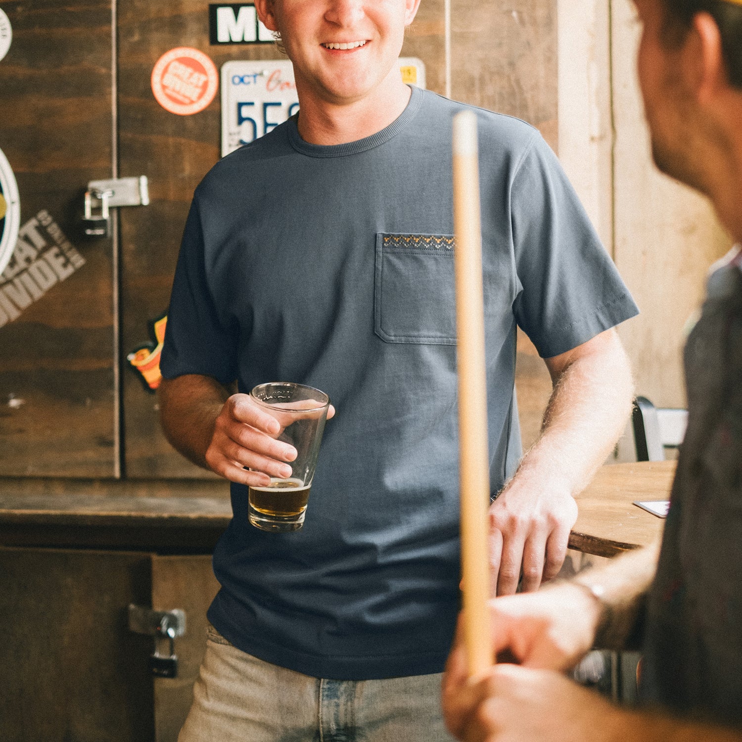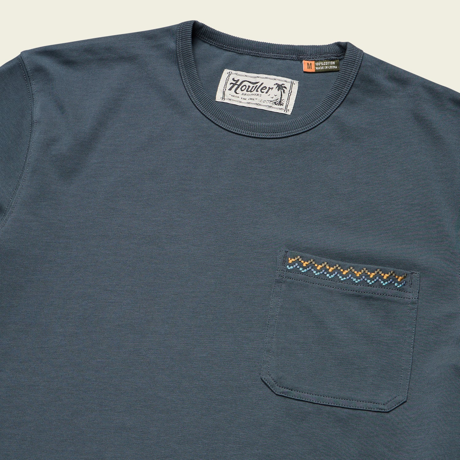 The Spectrum is a solid color, heavyweight cotton alternative inspired by classic cotton ts of the 80’s and 90’s. Featuring a ribbed collar and a kaleidoscope of inventive Howler Brothers front pocket embroidery.