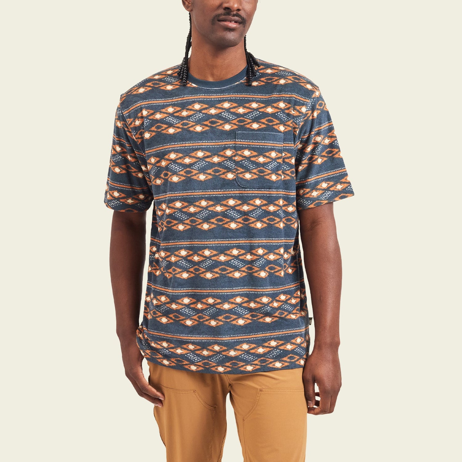 We love making new twists on vintage items. Our Terry Ts upgrade terry cloth surfing t-shirts from a bygone era with new, Howlerfied designs and modern materials. Made of ridiculously comfortable cotton-poly terrycloth with contrast stitching, left front pocket and Howler icon tag at side seam.